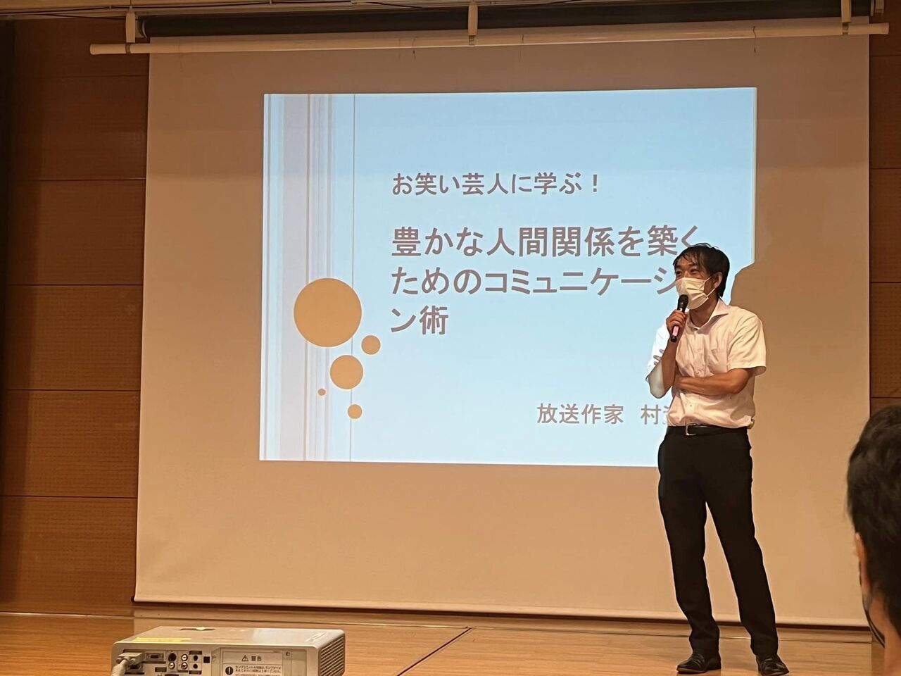 放送作家である村瀬健様を講師としてお招きし、お笑い芸人の実例などを踏まえた日常生活に活かせるコミュニケーション術を学ばせていただきました。